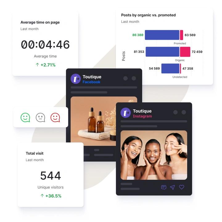 Bring all your social media data together in one place. Gain a complete, customized picture of your social marketing activities with AI-powered insights to refine your strategy.