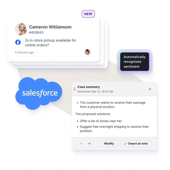 Effortlessly collaborate with CRM users, seamlessly escalating cases with complete context and data.