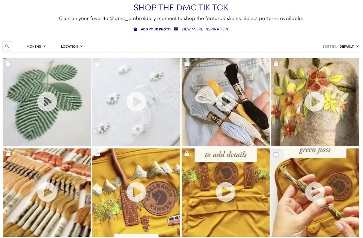 Textiles brand DMC uses Pixlee to power a “Shop The DMC TikTok” page on the brand’s site, driving sales as well as engagement to their TikTok profile.